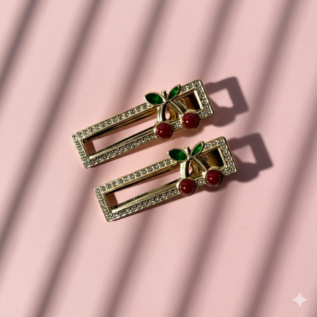 ¡Dale un toque jugoso y adorable a tu peinado! Estos clips de pelo con cerecitas son perfectos para sujetar mechones y darle un estilo divertido y femenino a tu cabello. Ideales para el día a día, maquillaje o skincare, y para cualquier ocasión en la que quieras un look cute y alegre.